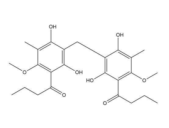 Chemical Name: Pseudoaspidin, Chemical Formula: C25H32O8, Purity: HPLC≥98%.High-purity plant reference material for precise scientific research and analysis.