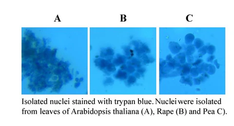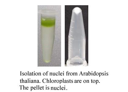 The kit is designed for rapid fractionation of fresh/frozen soft plant tissues, especially leaves. Unlike other commercial kit and Lab protocols, of which large amount of starting material (a few grams) and lengthy processing time are required, this kit only uses 100-200 mg starting material. By using a specialized filter cartridge coupled with our proprietary buffer system, four subcellular fractions (cytosol, nuclei, chloroplasts and organelles) can be obtained in about 1 hour. The subcellular fractions can be used in numerous applications that include but not limited to protein trafficking, nuclear protein extraction and nucleic acid purification/sequencing. The highly enriched nuclei can be used for proteomics, flow cytometry analysis, DNA sequencing, and protein-protein/protein-DNA interaction studies. The subcellular fractionation protocol includes grinding tissue to release plant cells followed by disruption of the cell membrane by rapidly passing through the filter. Different subcellular fraction is obtained by differential centrifugation using only a table top centrifuge. This kit has been tested for use with many species such as Arabidopsis, Spinach, Peas, and Rape.