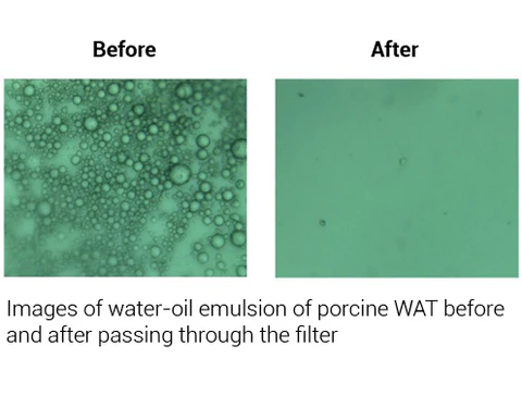 Adipose tissue, especially white adipose tissue (WAT), has been recognized as an essential endocrine and inflammation organ in addition to its energy storage function. Analyses of proteins from adipose tissues are increasingly critical for understanding many physiological/pathological conditions. However, isolation of WAT and brown adipose tissue (BAT) is technically challenging due to their high lipid and low protein contents. The water-oil emulsion present in a biological sample is notoriously difficult to separate. We have developed a novel technology to address this issue. A porous filter with unique surface property and pre-defined pore size and thickness coupling with a specially formulated detergent-free extraction buffer is employed to rapidly and effectively separate water-oil emulsion derived from adipose tissue homogenate. The extraction buffer has a lower freezing point than oil in adipose tissues, and the aqueous phase can be quickly separated from the oil phase by passing the tissue homogenate through the filter. The total proteins isolated are the unbiased representation of cellular proteins in the tissue. The extracted proteins concentration is very high (2-3 mg/ml) compared to traditional methods.